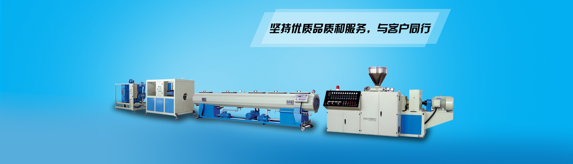 PVC管材擠出生產(chǎn)線   該機(jī)組由PVC錐形雙螺桿擠出機(jī),真空定型臺(tái),牽引機(jī),切割機(jī),翻料架等組成。擠出機(jī)及牽引機(jī)采用進(jìn)口交流變頻調(diào)速裝置,真空泵及牽引電機(jī)均采用優(yōu)質(zhì)產(chǎn)